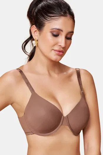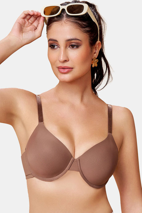 Maroon Clothing Double Layered Wired Full Coverage Tshirt Bra - Brown