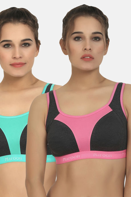 Maroon Clothing Medium Impact Relaxed Non Padded Sports Bra (Pack of 2) - Multicolor