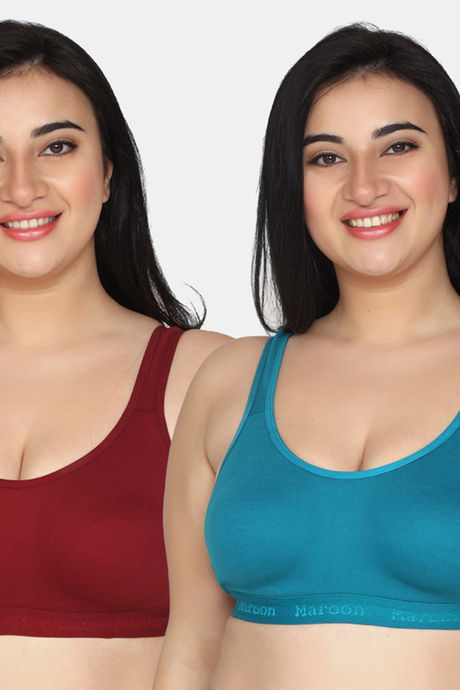 Maroon Clothing Medium Impact Relaxed Non Padded Sports Bra (Pack of 2) - Multicolor