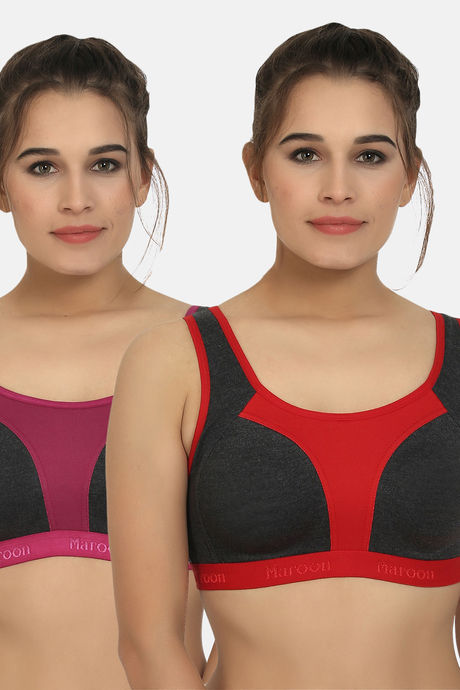 Maroon Clothing Medium Impact Relaxed Non Padded Sports Bra (Pack of 2) - Multicolor