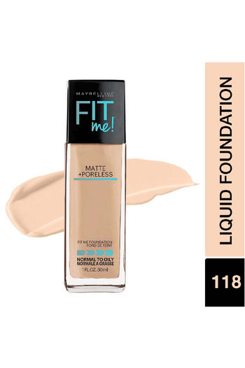Maybelline New York Fit Me Matte + Poreless Liquid Foundation, 118 Light Beige - 30 Ml
