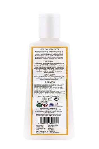 Mirah Belle Natural Organic Lemon Patchouli Anti Dandruff Shampoo (250 ml)