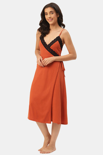 Ms.Lingies Rayon Mid Length Nightdress - Orange