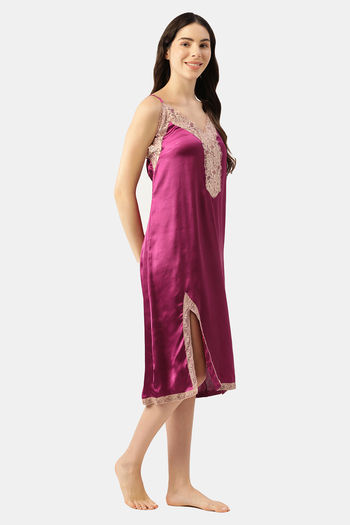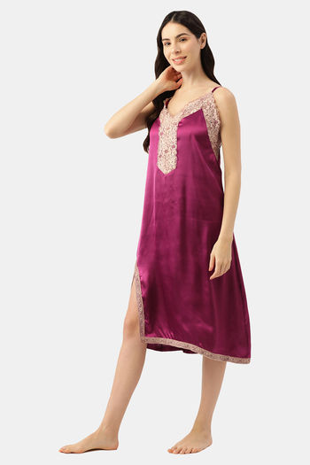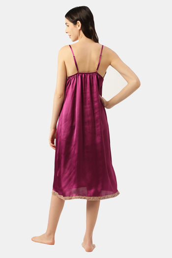 Ms.Lingies Satin Mid Length Nightdress - Purple