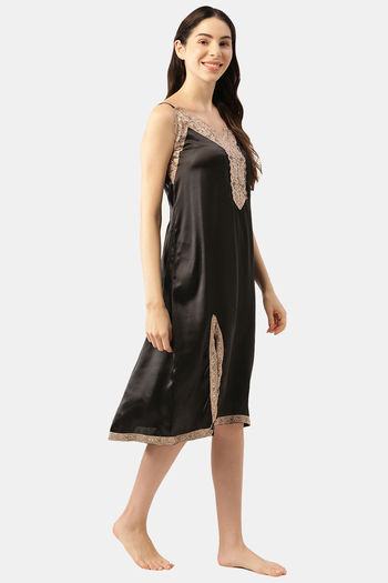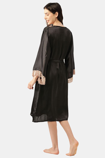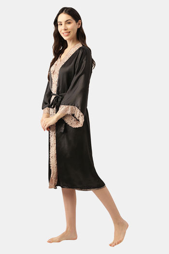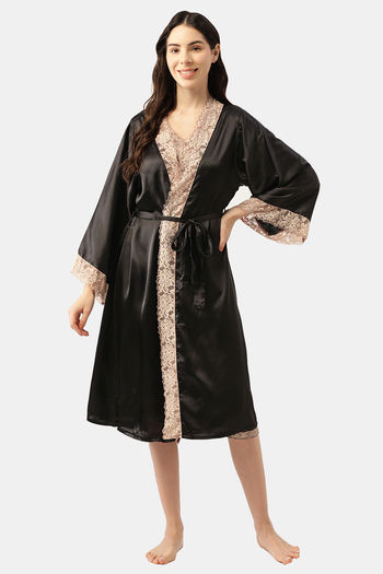 Ms.Lingies Satin Nightwear With Matching Robe - Black
