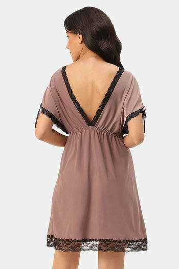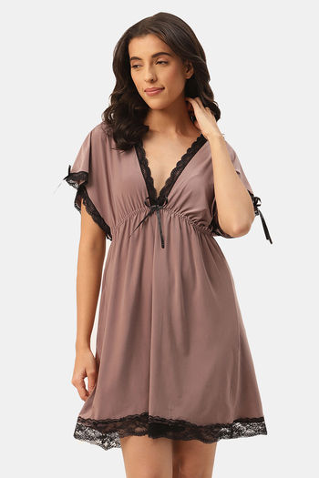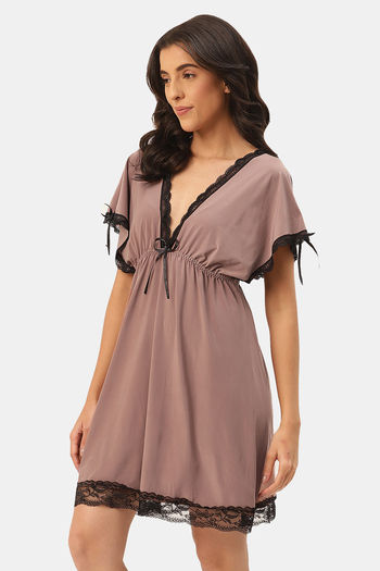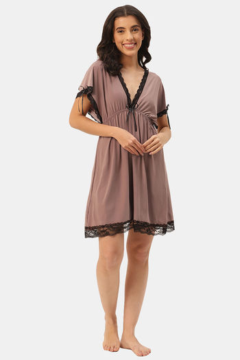 Ms.Lingies Viscose Loungewear Dress - Brown