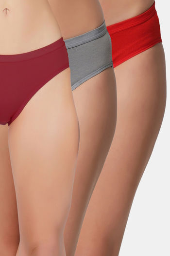 Buy Bleeding Heart Medium Rise Full Coverage Bikini Panty (Pack of 3) - Multicolor