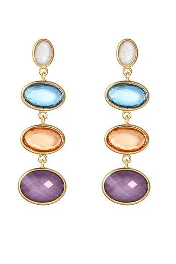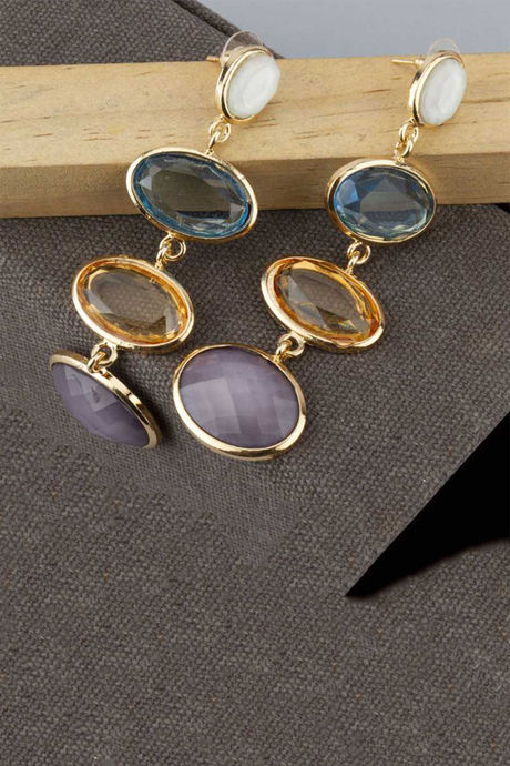 Yellow Chimes Multicolor Crystal Studded Party Wear Long Dangle Earrings