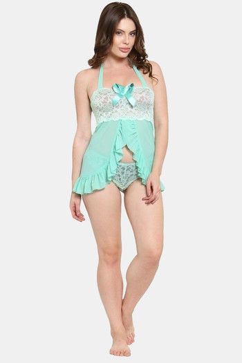 N-Gal Relaxed Fit Nylon Elastane Babydoll with Thong - Green