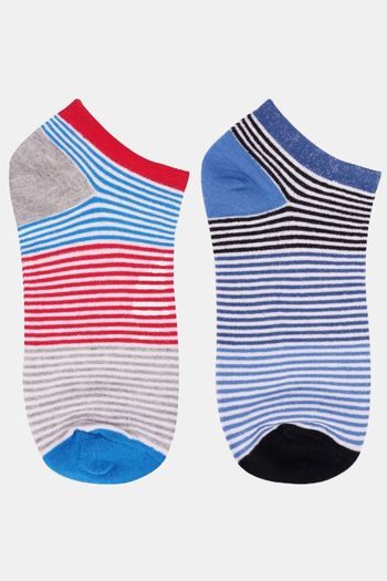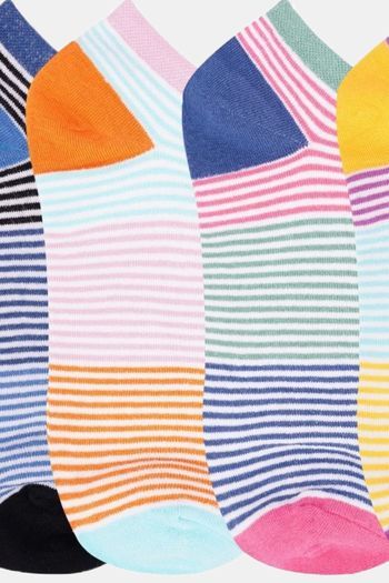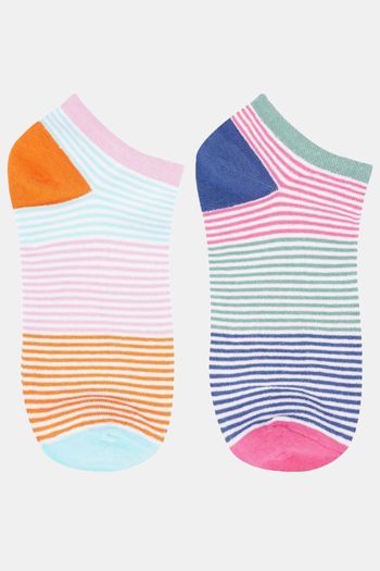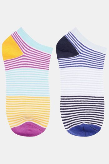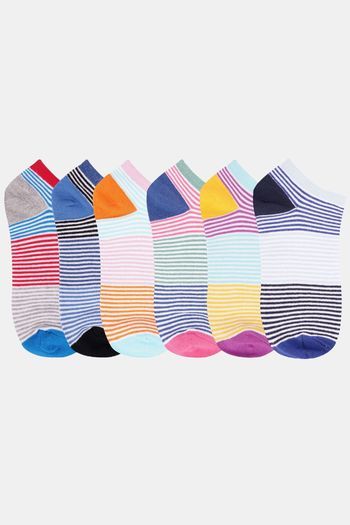 N2S NEXT2SKIN Women's Low Ankle Length Colored Stripes Cotton Socks (Pack of 6) - Assorted