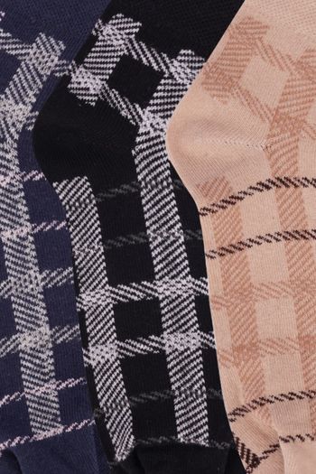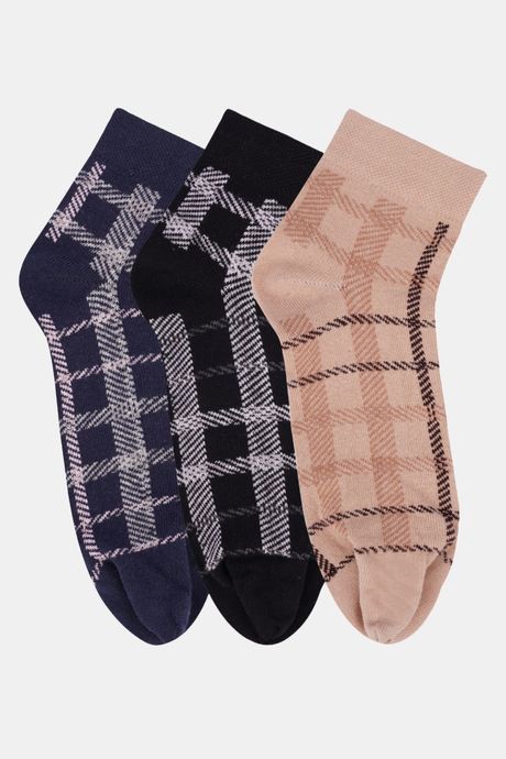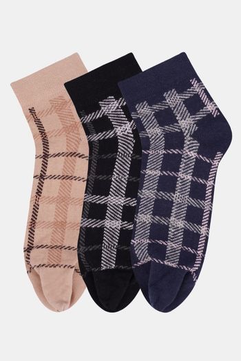N2S NEXT2SKIN Women's Low Ankle Length Cotton Plaid Pattern Thumb Socks (Pack of 3) - Assorted