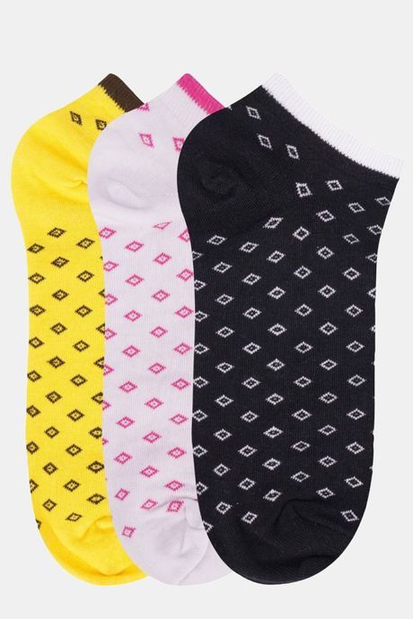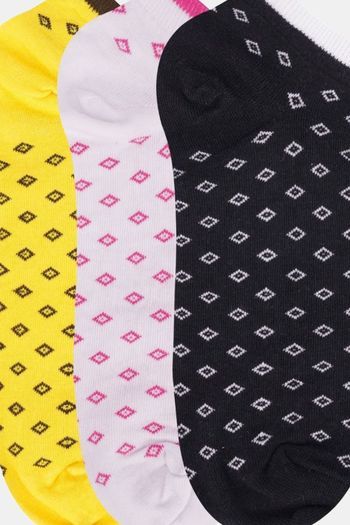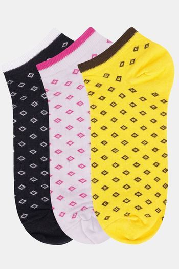 N2S NEXT2SKIN Women's Low Ankle Length Diamond Printed Cotton Socks (Pack of 3) - Assorted