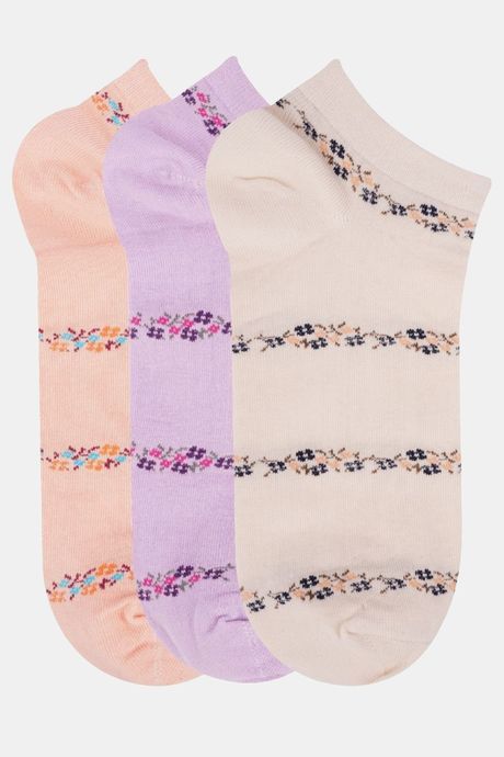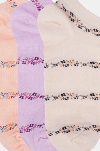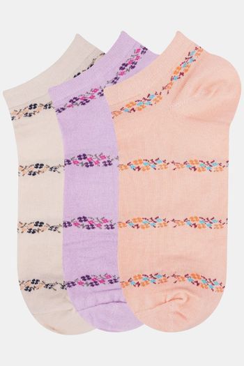 N2S NEXT2SKIN Women's Low Ankle Length Floral Pattern Cotton Socks (Pack of 3) - Assorted