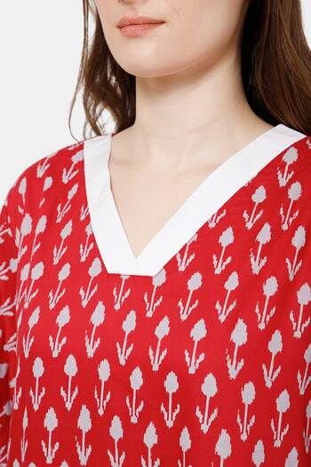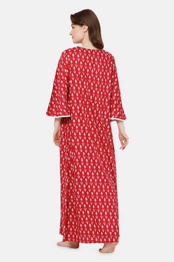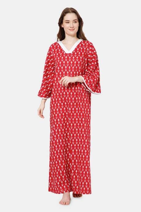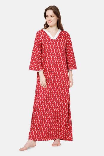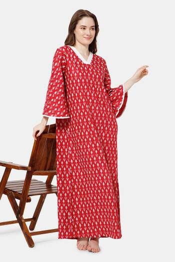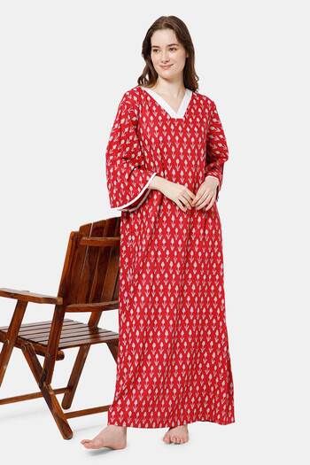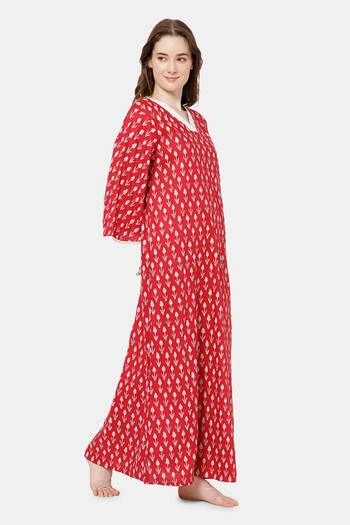Naidu Hall Cotton Full Length Nightdress - Red