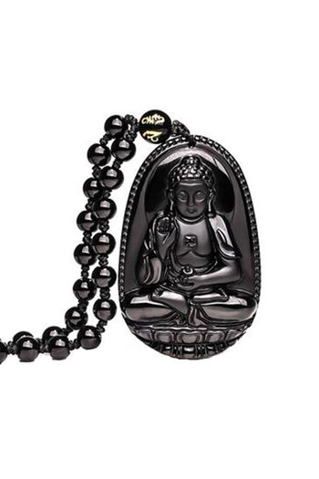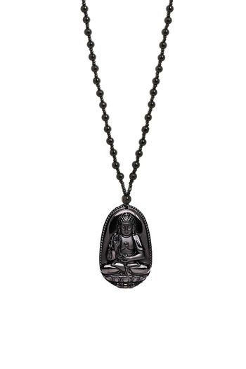 Yellow Chimes Natural Black Obsedian Beads Buddha Pendant Necklace