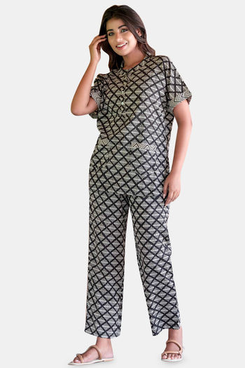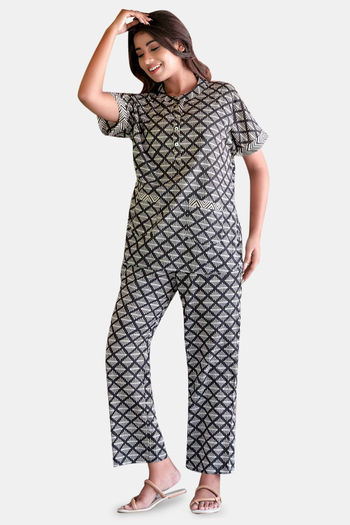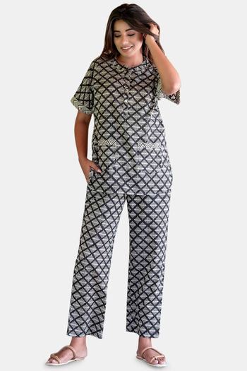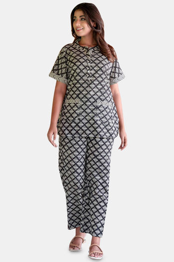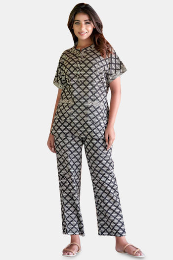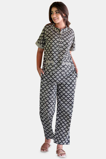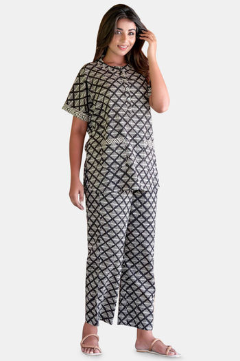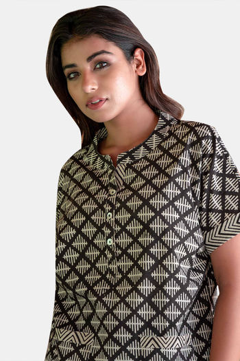 Navyas Fashion Cotton Loungewear Dress - Cream and Black