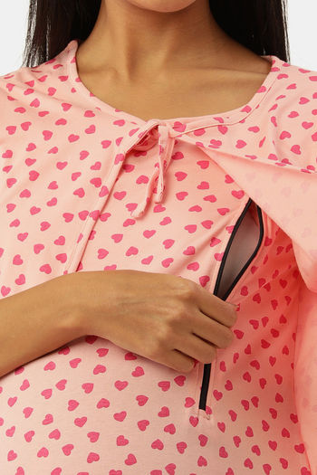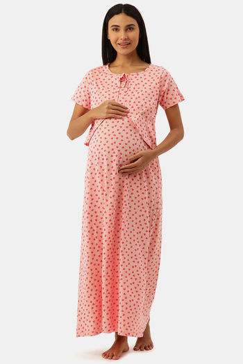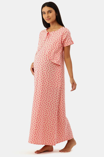 Nejo Cotton Full Length Maternity Nightdress - PinkheartAop