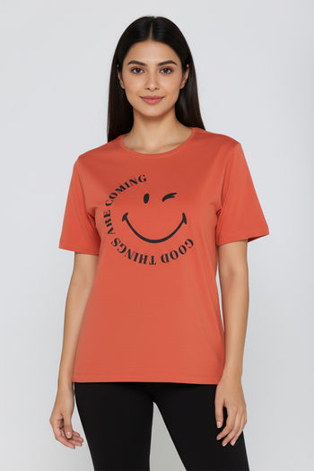 Buy Zivame Smiley World Knit Cotton Loungewear Top - Orange Rust