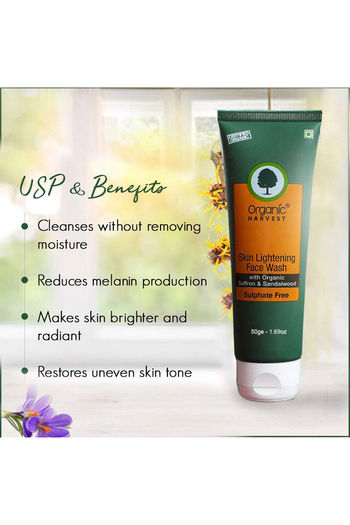 Organic Harvest Skin Lightening Face Wash - Organic Saffron & Sandalwood 50 g