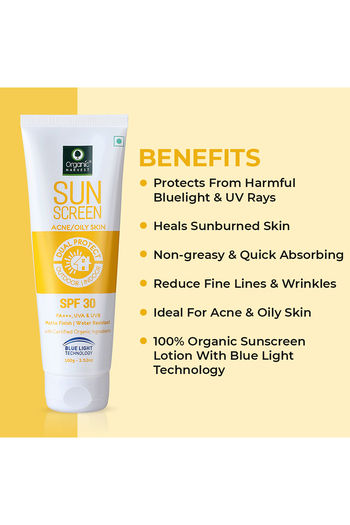 Organic Harvest Sunscreen Cream - SPF 30 (Acne/Oily Skin) 100 g