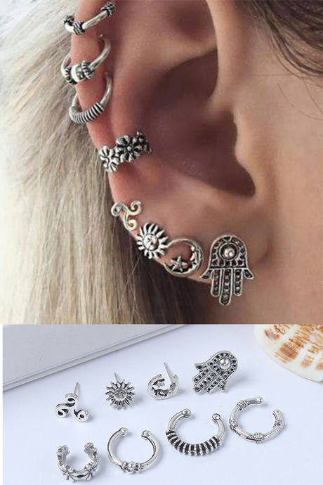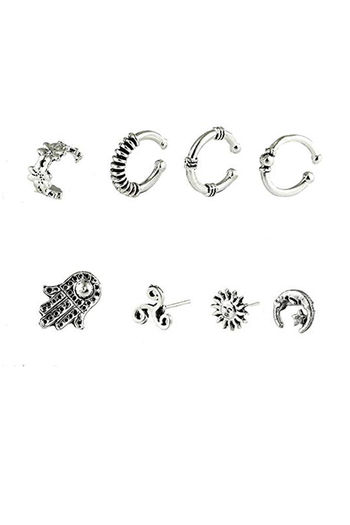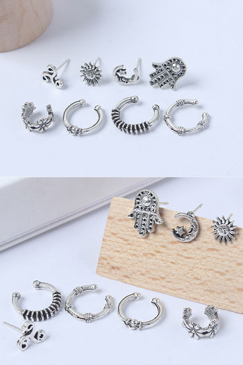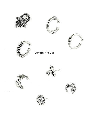 Yellow Chimes Oxidized Silver Bohemian Mismatch Fashion Brass Ear Stud Earring Combo of 8 Pcs - Silver