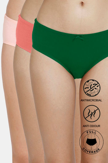 Zivame Girls Anti-Microbial Low Rise Full Coverage Hipster Panty (Pack of 3) - Multicolor