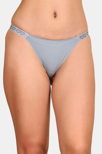 PrettyCat Low Rise Sexy Bikini Panty With Rhineston Strap - Grey