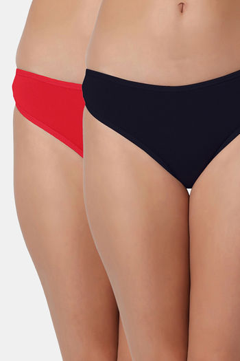 Bleeding Heart Low Rise Zero Coverage Thong (Pack of 2) - Red Blue