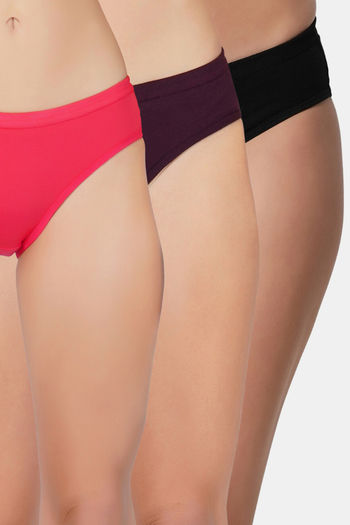 Buy Bleeding Heart Medium Rise Full Coverage Bikini Panty (Pack of 3) - Multicolor