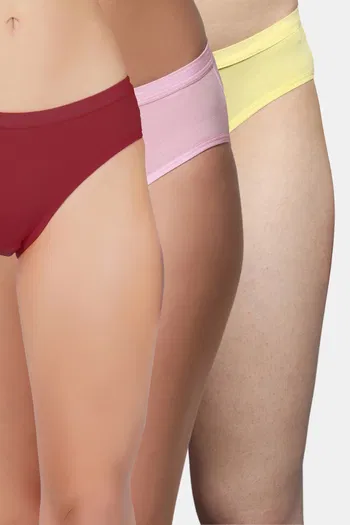 Buy Bleeding Heart Medium Rise Full Coverage Bikini Panty (Pack of 3) - Multicolor