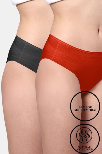 AshleyandAlvis Anti Microbial Medium Rise Full Coverage Hipster Panty (Pack of 2) - Black Red