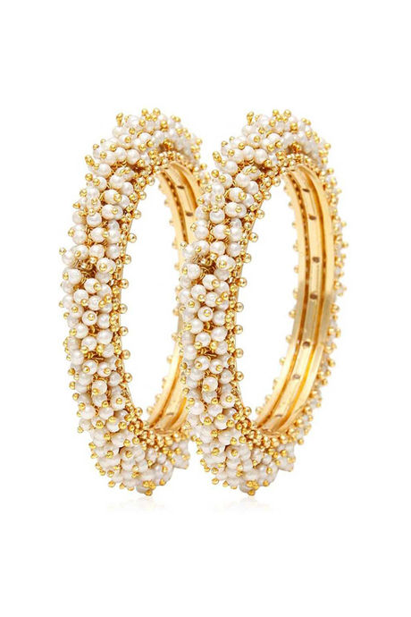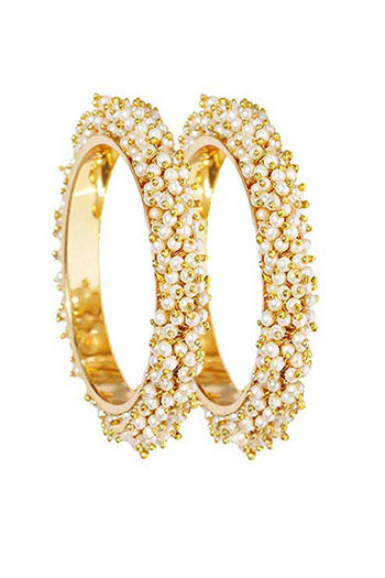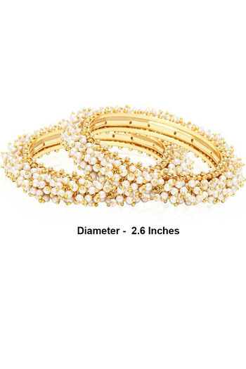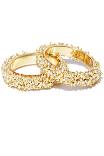 Yellow Chimes Pearl Studded Moti Traditional Gold Plated 2 PCs Bracelet Bangles Set - Gold