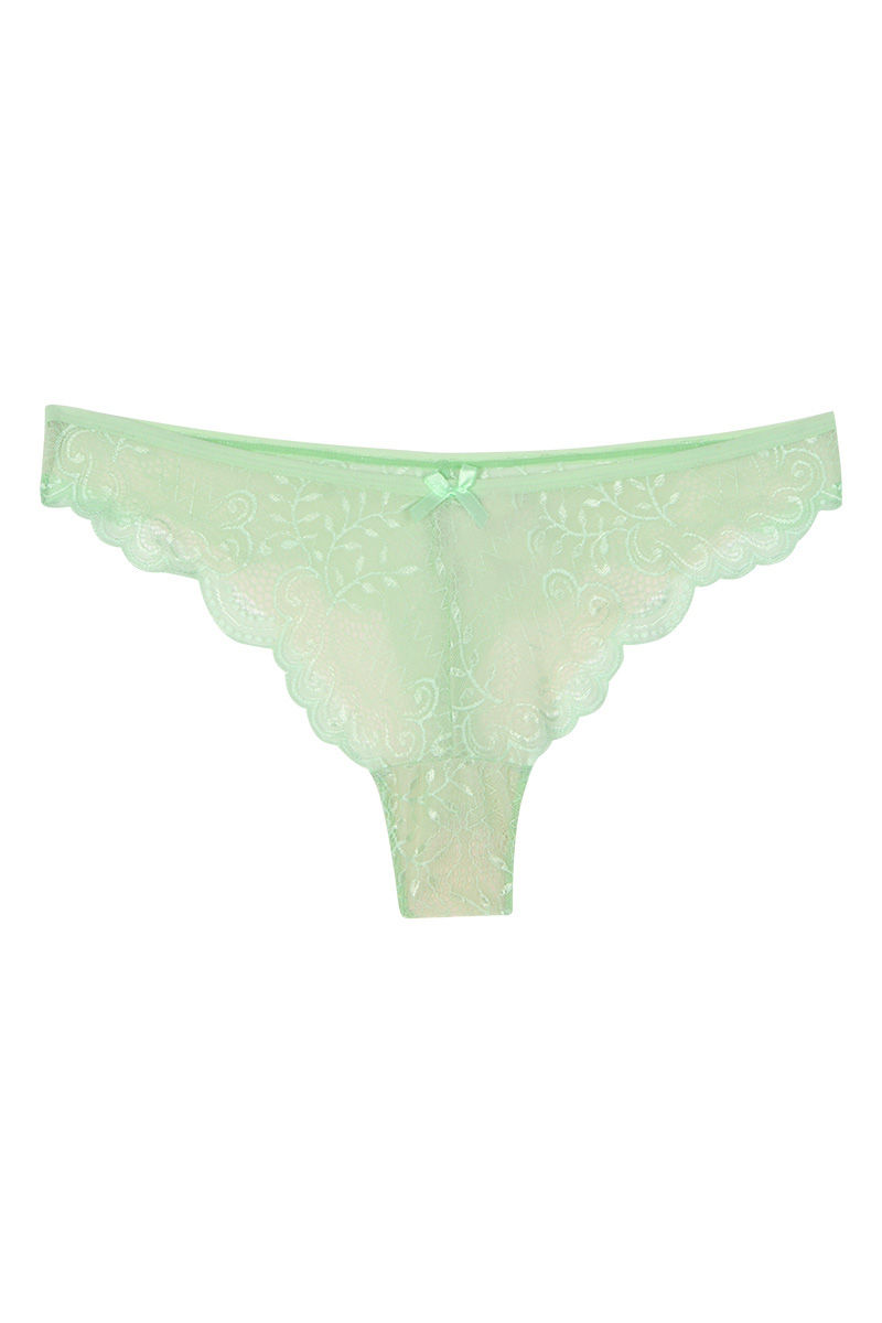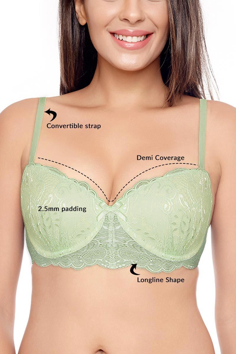 Zivame Delicate Summer Lace Green Strapless Longline Bra With Low Rise Thong