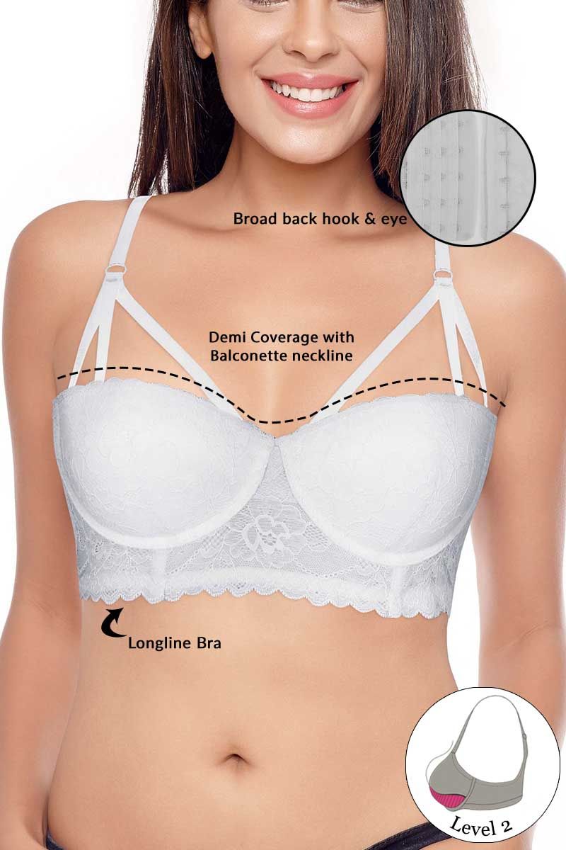 Zivame Monroe Strap Longline Push Up Bra With Lace Hipster Panty-White