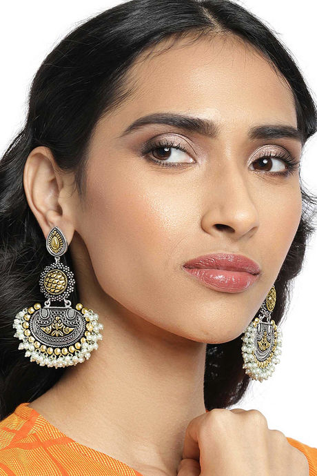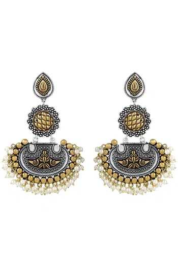 Peora Afghani Tribal Dual Tone Oxidised Silver Dangle Earrings Traditional Jewellery (PF66E109SG)
