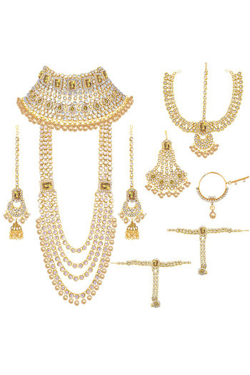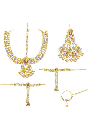 Peora Ethnic Traditional Gold Plated Brass Kundan Dulhan Bridal Jewellery Set (PF36BR02LCT)