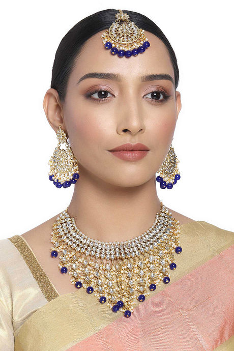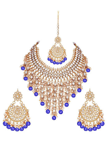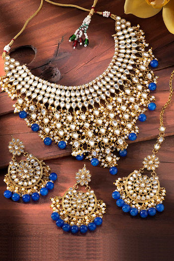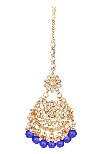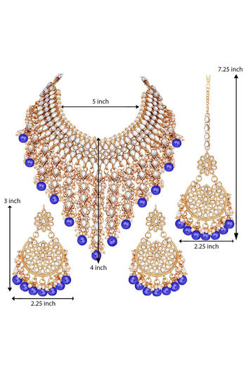 Peora Gold Plated Brass Kundan Necklace & Earring Jewellery Maang Tikka Set (PF25N1177B)