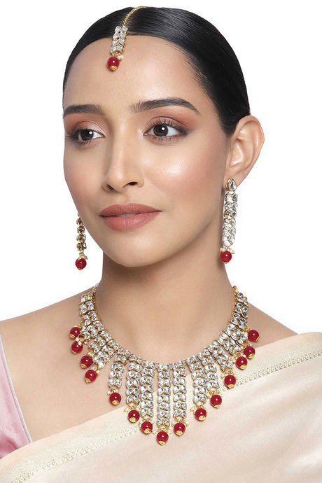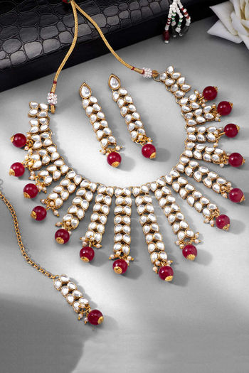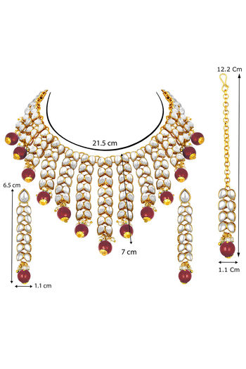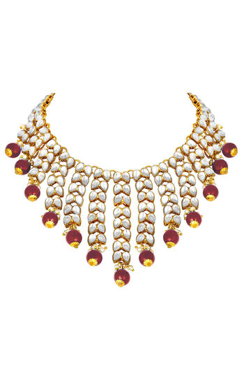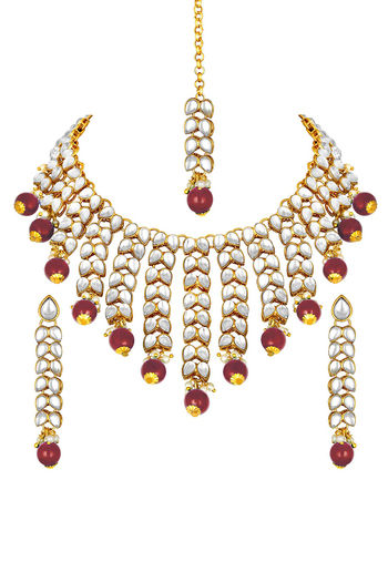 Peora Gold Plated Brass Kundan & Pearl Drop Necklace Earring Jewellery Set (PF24N2936M)