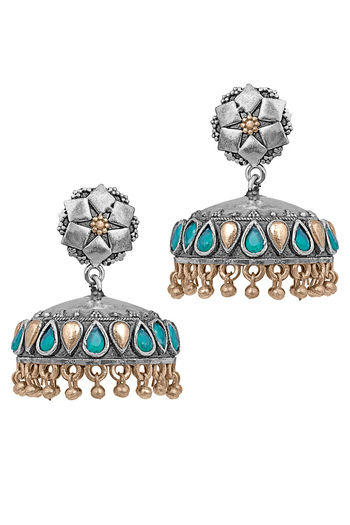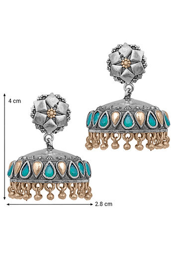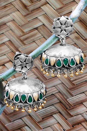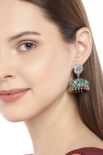 Peora Silver Plated Brass Ethnic Earrings Jewellary - Green