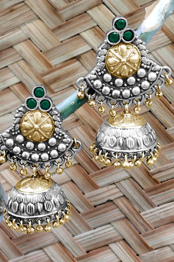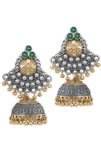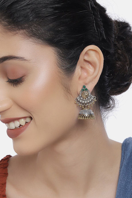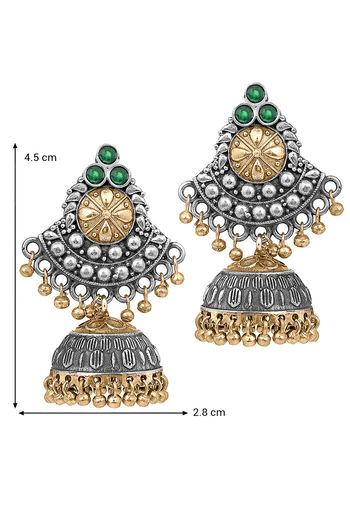 Peora Silver Plated Brass Ethnic Earrings Jewellary - Green