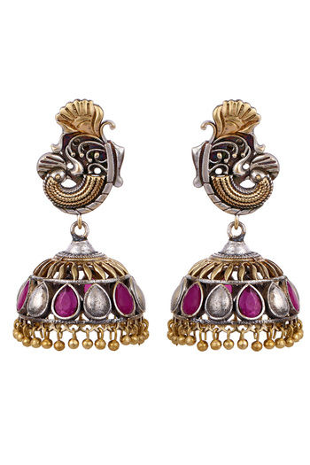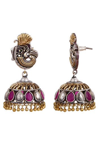 Peora Silver Plated Brass Ethnic Earrings Jewellary - Magenta