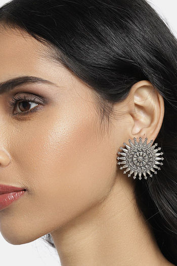 Peora Silver Plated Brass Ethnic Earrings Jewellary - Silver