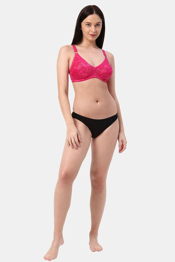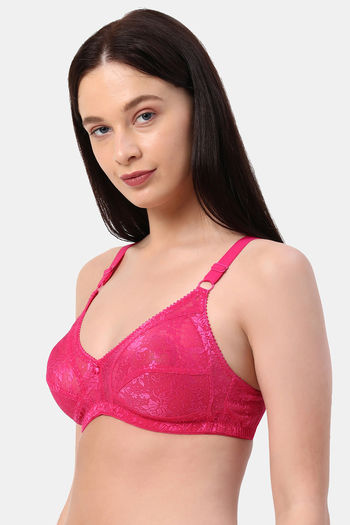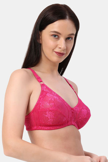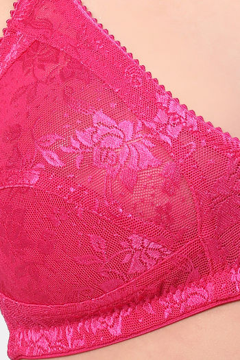Planetinner Non Padded Non Wired Full Coverage Lace Bra - Red
