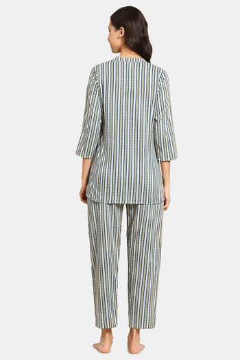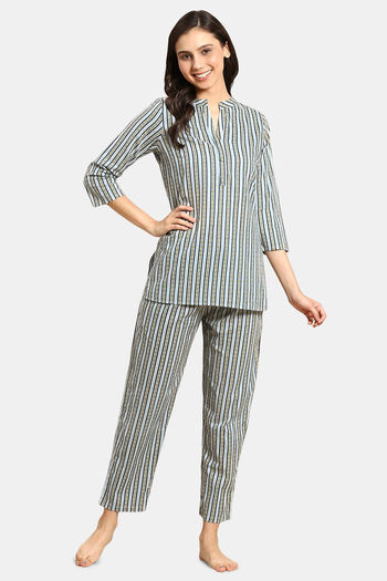 Prakrti Cloth Cafe Cotton Pyajama Set - Blue