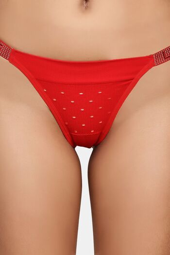 PrettyCat Chic Low Rise Bikini Panty with Rhinestone Strap Detail - Red