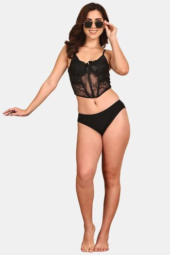 Prettycat Corset Luxury Glitter Crop Top Bra For Nightclub Party - Black