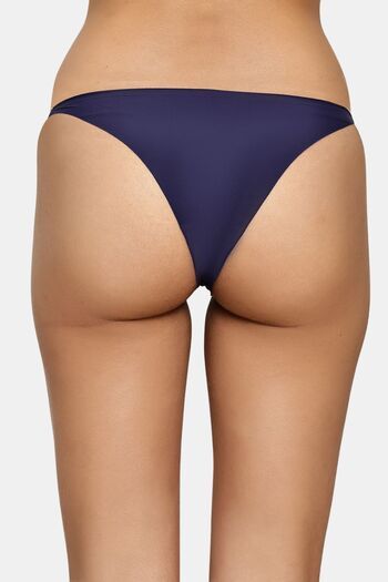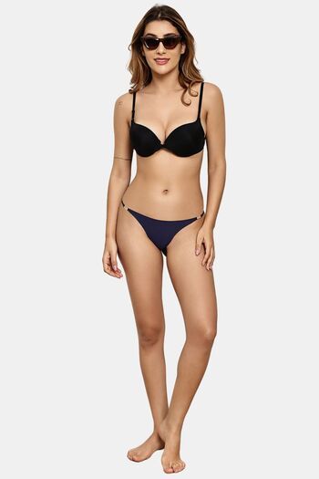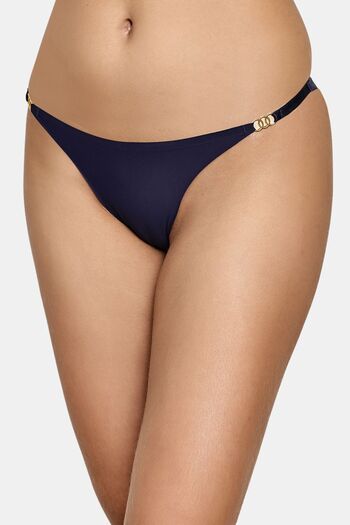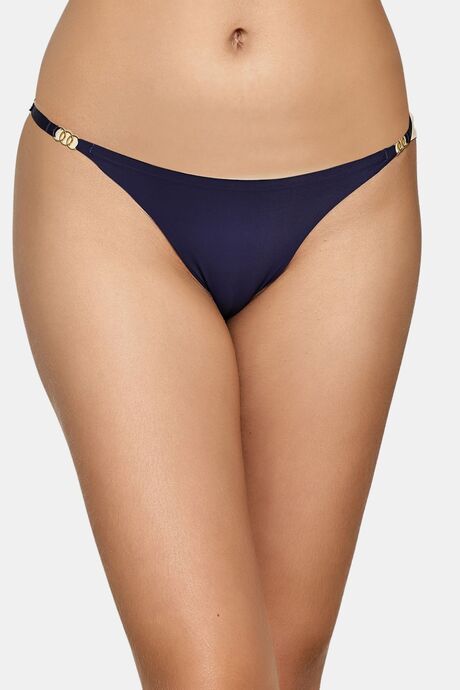 PrettyCat Elegant Low Rise Bikini Panty with Gold Ring Accent - Blue