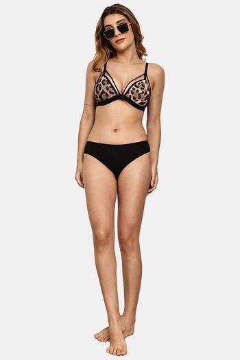 Prettycat Leopard Print Strappy Triangle Bra For Women - Yellow