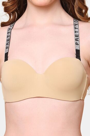 PrettyCat Lightly Padded Balconette Bra With Shine Strap for Women & Girls - Beige