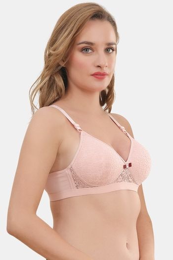 Prettycat Lightly Padded Non-Wire Lace T-Shirt Bra - Pink